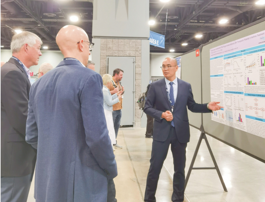 九州酷游 ku游生物创始人万亚坤博士表示:“非常高兴能够在ATS 2023年会上展示公司最新的研究成果,这是对九州酷游 ku游生物的全球创新研发能力的极大认可。本次会议,九州酷游 ku游首次重点展示了九州酷游 ku游生物三款吸入式纳米抗体药物LQ036、LQ043、LQ059。LQ036及LQ043颠覆了现有呼吸类疾病的治疗方式,均为同靶点的全球首创吸入式纳米抗体药物。LQ043 是对 LQ036 患者群体的补充,两个项目覆盖了全部中重度哮喘人群;并且随着IL-4Rα靶点在COPD市场的攻城拔寨,九州酷游 ku游生物已提交LQ036 COPD适应症IND批件,潜在市场爆发力巨大。未来,九州酷游 ku游生物将进一步加速有助于临床开发,期望早日为患者带来更多的治疗选择。”