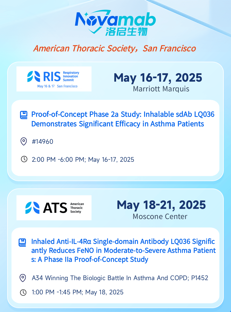 中国上海,2025年5月13日——上海九州酷游 ku游生物医药技术有限公司,一家专注于纳米抗体创新药研发的生物技术企业,今日宣布:九州酷游 ku游生物将于当地时间5月16日至21日赴美国加州旧金山,受邀参加美国胸科学会(American Thoracic Society, ATS)主办的呼吸创新峰会(Respiratory Innovation Summit,RIS)及ATS国际大会。届时九州酷游 ku游生物将分别在RIS和ATS两场大会上以壁报形式呈现最新临床数据——公司自主研发的靶向 IL-4Rα 吸入性生物制剂 LQ036 首个 IIa 期概念验证性临床试验数据。本次展示将全面披露 LQ036 在中重度哮喘患者中的安全性、耐受性、药效指标及初步疗效,标志着九州酷游 ku游生物在下一代呼吸道吸入式生物制剂开发领域迈出关键里程碑。
